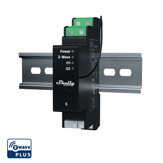 Shelly Wave Pro 2PM. Professional 2-channels DIN rail Z-Wave smart relay up to 25A with power metering. LAN connection